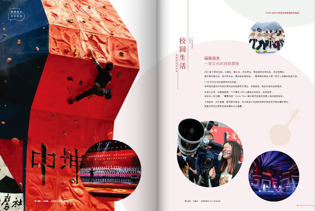 这里是释放视觉吸引力的地方。采用多图排版布局,如网格拼贴、大小图结合、满版出血图等,生动展现社团活动、体育赛事、校园风景、宿舍环境等。