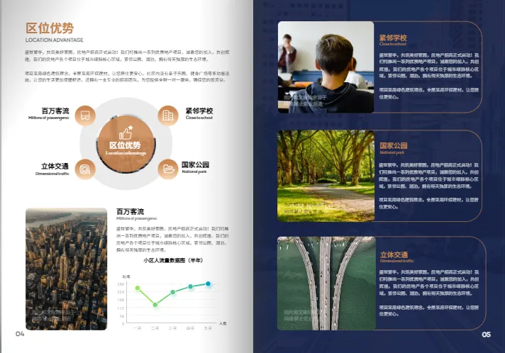 - 视觉优先:大量运用高清的实景照片、效果图、区位俯瞰图,构建强烈的空间感和临场感。