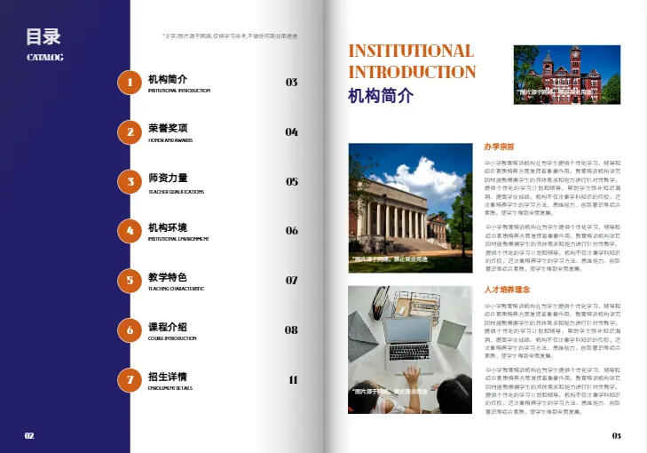 下面这两套教育行业画册模板,色彩明亮活泼,版式灵活多变,充分体现教育机构的活力与创新