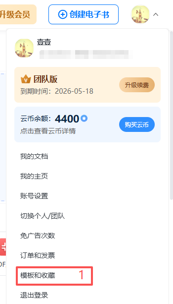 点击右上角的头像,点击【模板和收藏】。