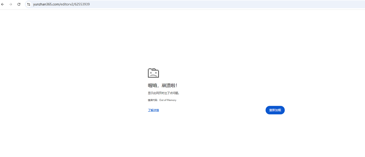 在使用编辑器过程中,浏览器经常出现崩溃的情况,原因可能是您电脑的内存不足导致的。可参考下方的几种解决办法解决。