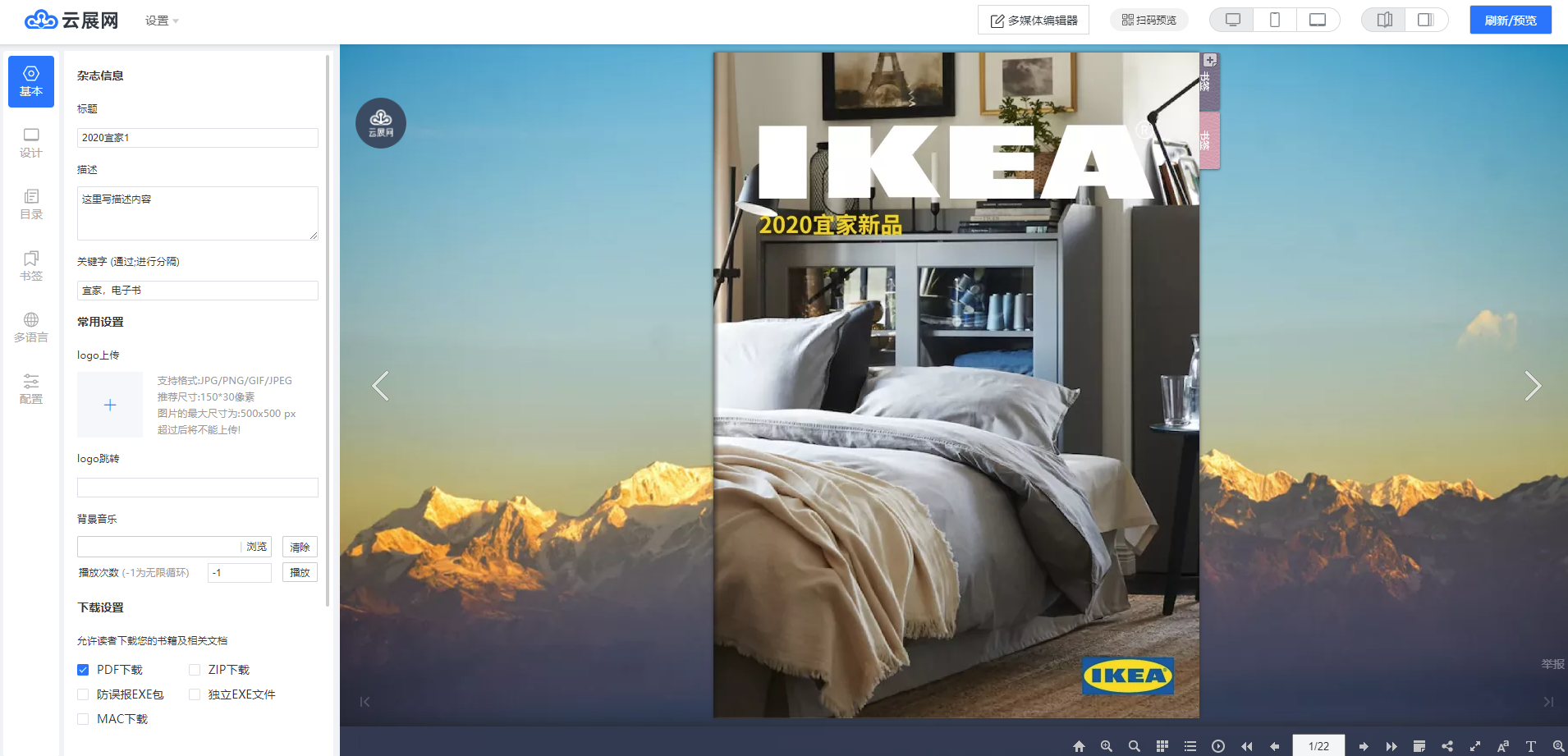 管理、修改电子杂志设置 创建杂志上传审核完毕之后,需要更改杂志设置,可以在登陆账号后,鼠标放在云展网右上角的头像处,点击“我的文档”,就能见到自己上传的书本了。 下面请看下红框中的编辑按钮,就是用于修改书本配置的: 编辑杂志:上传好的杂志可以通过编辑杂志更改各项功能,同步预览各种设置,更改杂志下载格式以及切割功能。具体功能请看编辑杂志功能介绍。