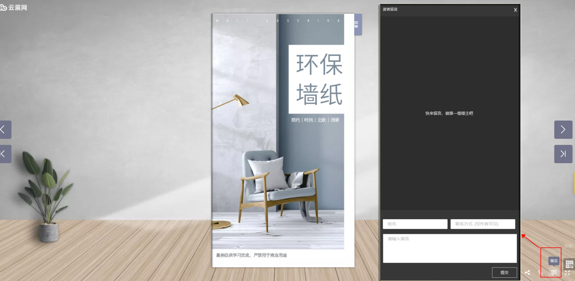 注:作者审核通过以后,要过30分钟才会显示在书本上,并且所有留言会同步到云展网后台进行二次审核,只要内容合法都会通过。