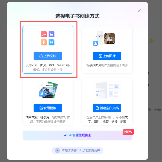 (1)点击【开始创建】,然后点击【上传文档】进入上传文档界面。