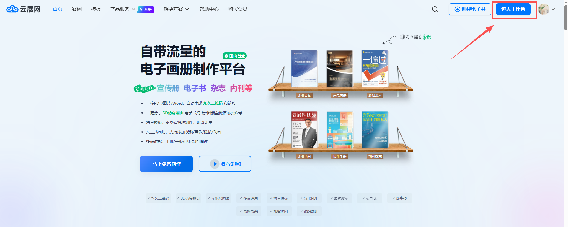 云展网是国内首家电子书制作平台,支持上传设计好的文档以及套用模板制作画册,手册,宣传册,期刊,内刊,报刊,招生简章等。这里主要是介绍如何快速上传文档生成翻页效果电子书。