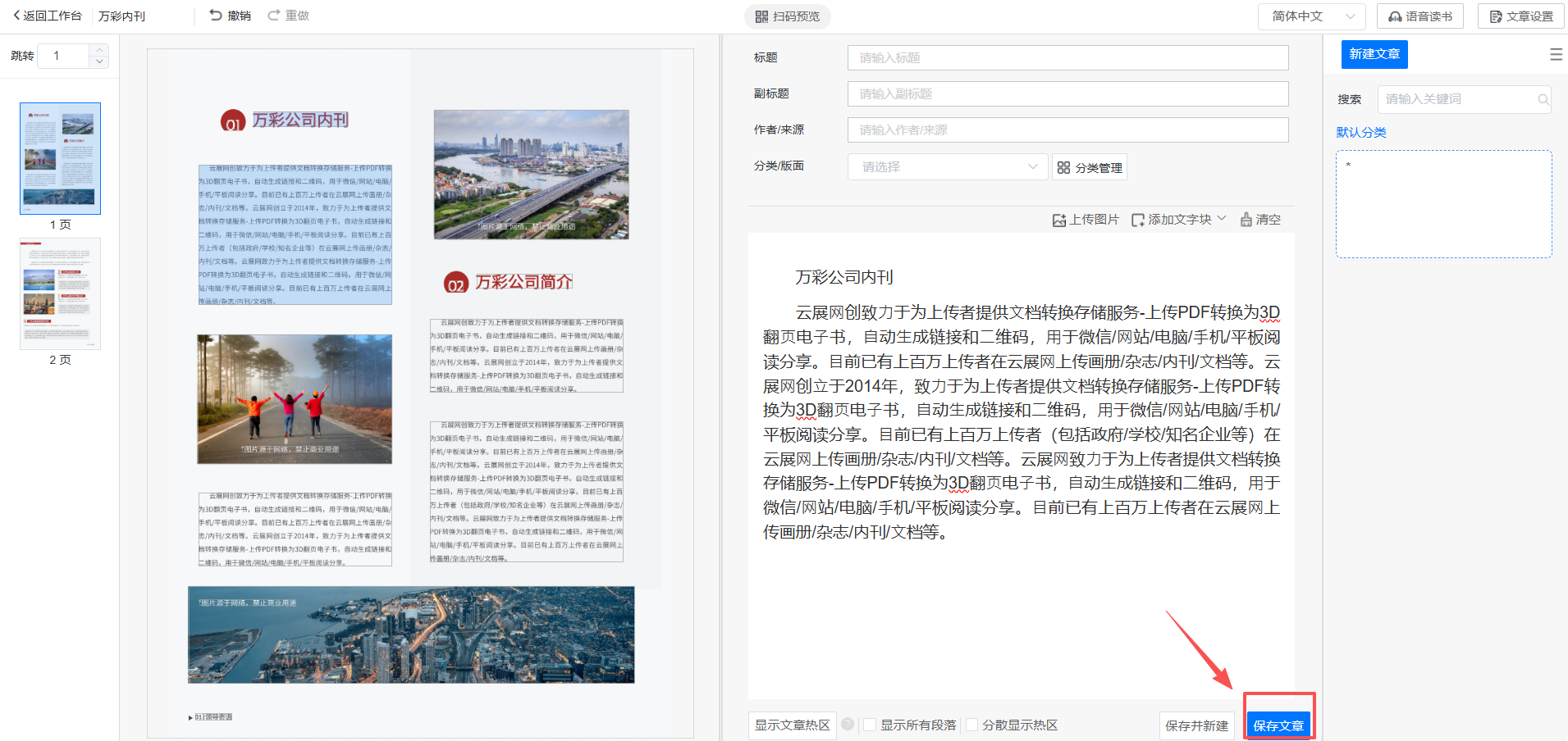 提取文章,就是把书本上每篇文章单独提取出来作为一个新的页面展示,可以直接分享该篇文章,并且读者看着会更清晰。有助于SEO搜索引擎的收录。特别适用于期刊,报刊这种文字篇幅比较多的书本。