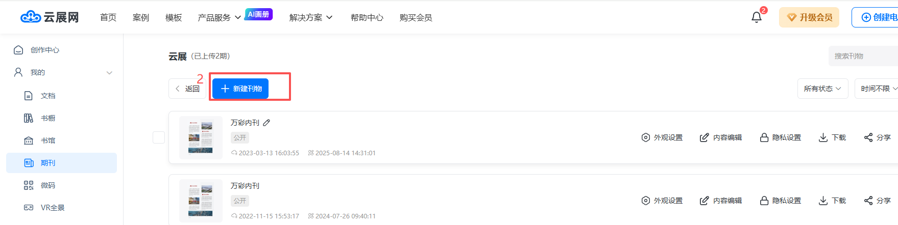 (1)点击【管理期刊】进入,然后点击【新建刊物】
