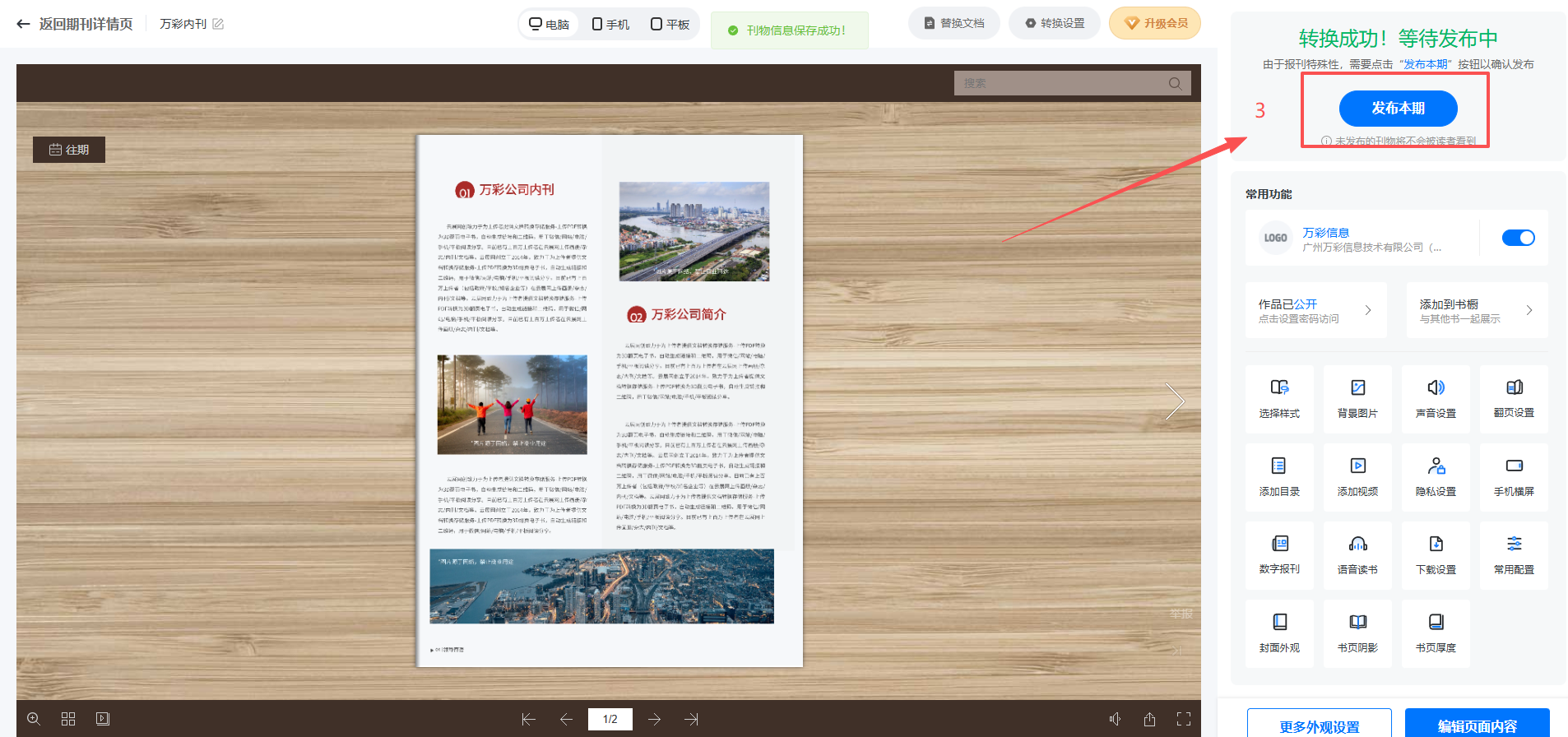(3)设置刊物信息,设置好后点击【发布本期】发布。