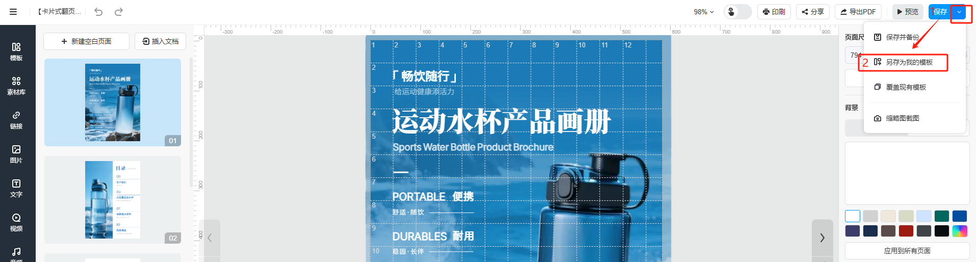 当新书只需要在旧书的基础上更换文字和素材时,如何提高效率?可以将旧书另存为模板,并直接创建成一本新书,或者直接应用模板中的某个页面,避免重复工作,提高效率!