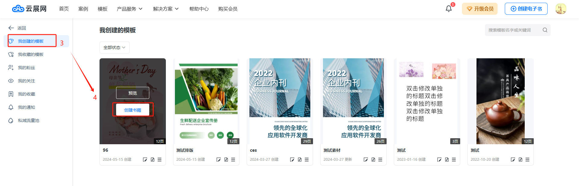 (4)另存的新模板会保存在【我的模板】/【我创建的模板】中,如果需要使用该模板进行制作,则点击【创建书籍】即可