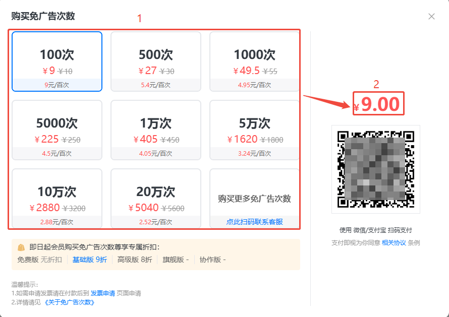 购买旗舰版以上会员,尊享无限次免广告次数:点我购买旗舰版以上会员。
