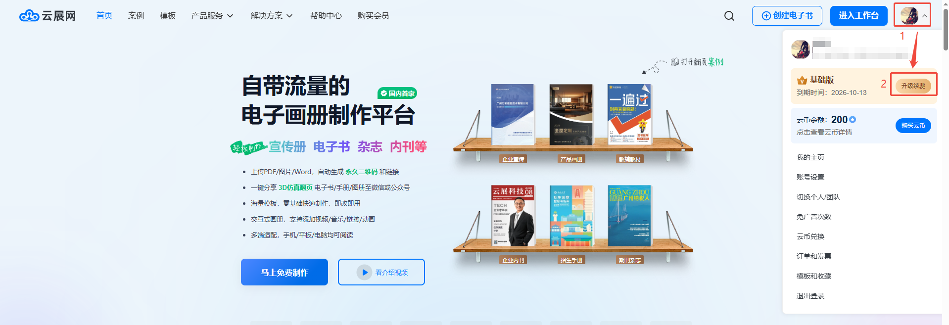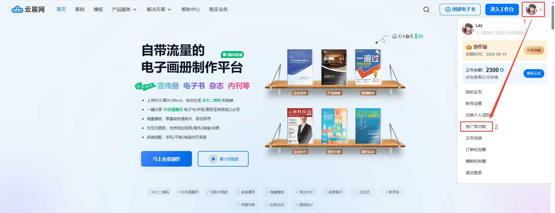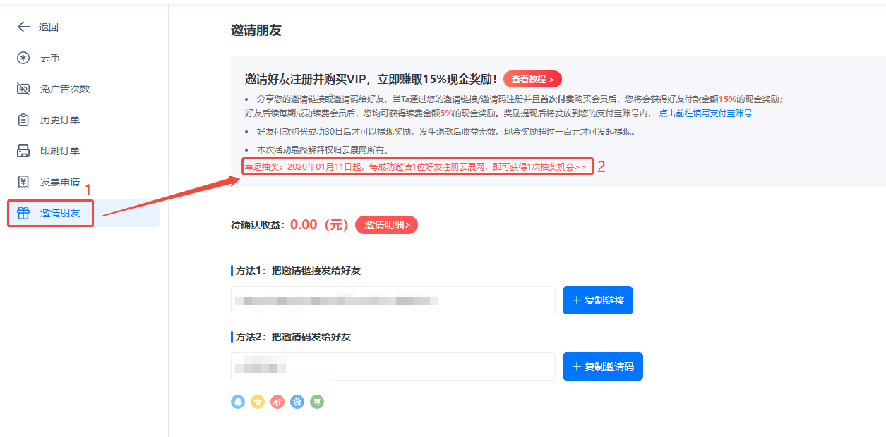 邀请好友注册云展网抽免广告次数(100%中奖),要求使用您自己的邀请链接或邀请码邀请好友注册。