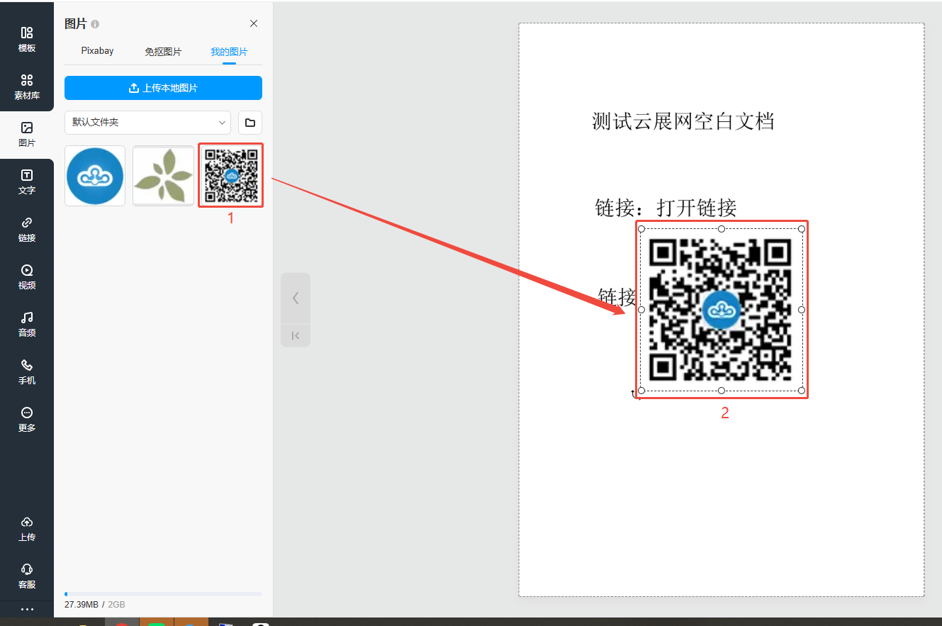 (2)单击上传好的图片,添加好图片以后可以调整图片大小以及位置。