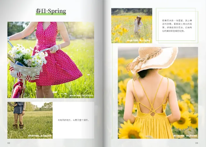 - 模板布局以突出踏春照片为主,留白适中,不会让页面显得拥挤,能完美展现春日游玩的氛围感。